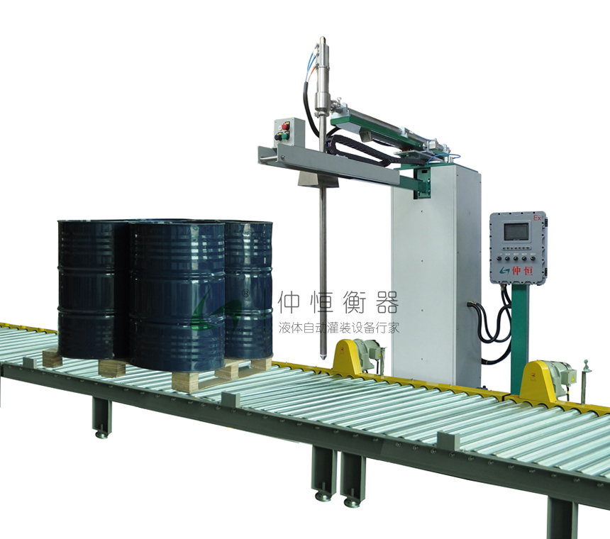 ■ 開機--叉車放桶至秤臺---操作灌槍手柄,按剎車解除鈕并左右、前后快速對口--釋放剎車解除鈕,灌槍緊緊固定--按【開始】鍵--灌槍自動插入桶口--自動去皮--自動打開灌槍及球閥組---大、小、微量三段灌裝---灌槍自動隨液面自動提升---到達目標值---灌槍自動關(guān)閉并升至桶外--(移除灌槍至下一桶,重復以上步驟至50GL四桶灌裝結(jié)束)---灌裝完成。